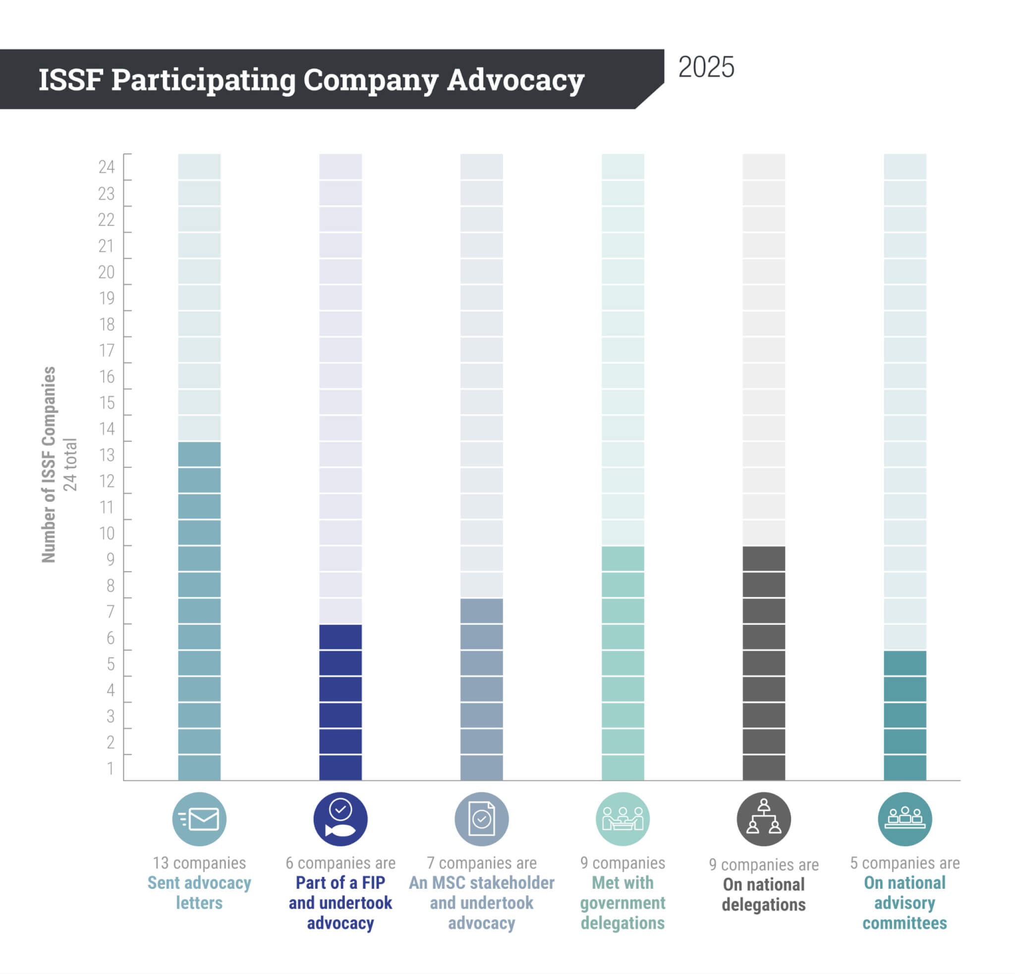 ISSF participating companies’ self-reported advocacy activities in 2025, which we do not audit, are summarized below.